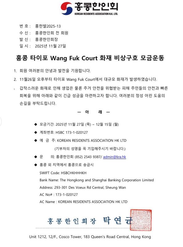 ▲ 홍콩한타임즈 광고후원 문의 : Email: hkkrtimes@gmail.com / 카톡ID: 242500ryune