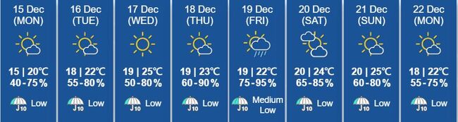 이번 주 중반에는 계절풍의 강도가 약해지면서 기온이 상승하겠지만내륙 지역은 일교차가 비교적 클 것으로 예상된다