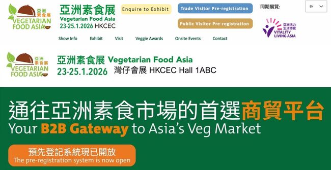 홍콩 최대 규모의 채식 및 친환경 생활 박람회인 베지테리언 푸드 아시아가 2026년 1월 23일부터 25일까지 홍콩 컨벤션 & 전시 센터에서 12번째 행사를 개최한다.