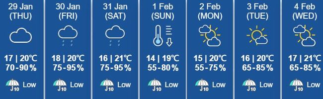 오늘과 앞으로 며칠 동안 강한 동풍이 광둥성 해안에 영향이 미친다. 넓은 구름대의 영향으로 이 지역에 한두 차례 소나기가 내릴 가능성이 있다. 오늘 최저기온은 17도, 낮최고기온은 20도이다.