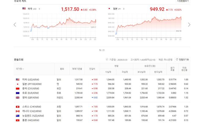 3월 30일 원/미달러 기준환율 1,5717.50, 원/홍콩달러 193.67