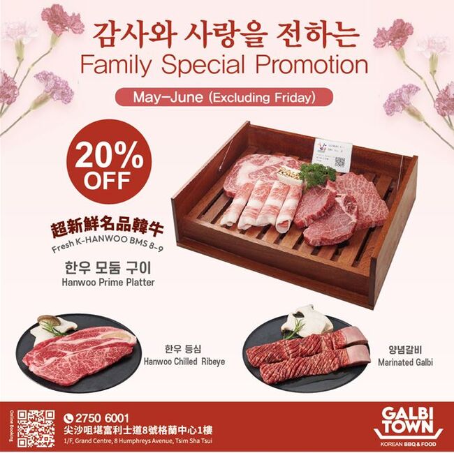 한우 모둠 구이 / 한우 등심 / 한돈 돼지갈비 20% 할인 (금요일 제외) 예약:2750 6001