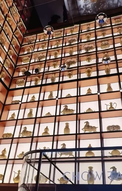 플래그십 매장 내부는 큐레이팅된 전시 공간을 연상시킨다. 헤리티지 파빌리온에는 올림픽 챔피언 류샹(劉香)에게서 영감을 받은 금 운동화, 2015년 밀라노 엑스포를 위해 제작된 24절기 금도금 세트, 정교한 세공과 망치질 기법으로 만들어진 전통 인형 등 약 100점의 금 공예품이 전시되어 있다.