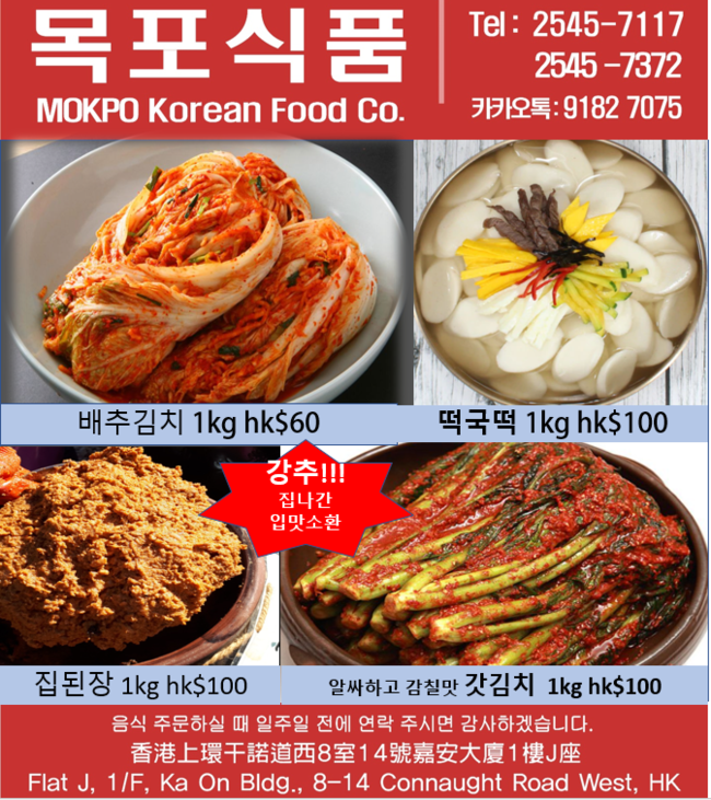▲목포식품 : 각종 떡, 김치류, 반찬류, 집된장, 떡국떡, 떡볶기떡 주문 : 2545 7117