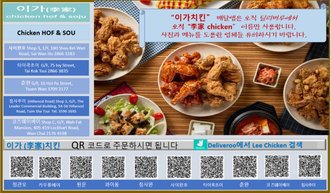■ 각종 보험, MPF 문의 : Korean Care Desk : tel. : 6279-0001) MPF 관련 & 각종보험 무료상담, 부담없이 문의하실 수 있습니다. ■ 코아보석 : 원가특가 10점 한정판매 (hkd1,900) 4~4.5mm Akoya 아코야 14k 장식 진주목걸이 (문의 : 6622-9045) ■ "스터디플렉스" 안전하고 쾌적한 홍콩최초 프리미엄 스터디카페 틴하우 3580 -0310 / 몽콕 3529-2088/ 스터디플렉스 채널추가 시 3시간 무료 ■ 홍콩한타임즈 온라인 광고후원 문의 : 비대면 시대 귀사의 마케팅 부서 “홍콩한타임즈” 문의 : 9730-1755 / 카톡ID 242500ryune / 이메일 hkkrtimes@gmail.com ▲ 굽네치킨: 홍콩 넷플릭스에서 1위를 한 화제의 드라마 "사내맞선" 드라마에 나왔던 사내맞선 세트 출시!!! ▲한형제 횟집 : 카카오톡에서 한형제 횟집 검색 채널 추가/홍콩전지역 배송가능/ 청정 제주현지에서 100% 엄선한 신선한 광어와 참돔 봄도다리 봄숭어 등의 횟감과 해산물들이 매주 대한항공편으로 입고됩니다. 예약문의 : 5703 2769 ▲신국화(NEW KWOK WHA MEAT) 한국농장 최초 직수입업체, 한우, 한돈, 삽겹살, 왕갈비 비, 국거리 등 10%할인(쿠폰지참)4월 30일까지 ▲ 한참 엠파이어 : 고기와 게장이 맛있는 문화나눔의 한식당, 동침사츄이 리갈구룡호텔 맞은편, 예약번호 2511 6316 (침사추이 P1, P2 출구) ▲▲홍콩한국교회협의회 소속교회 : ※침사추이(홍콩동신교회(2723 6411/홍콩제일교회(2735 3357)/홍콩애진교회(9310 4414 ※타이쿠싱(온사랑교회(3705 2098)/ 홍콩엘림교회(2886 5300) ※신계사틴(홍콩한국선교교회(2695 4792) ※왕척항(홍콩중앙교회(2545 9901) ※성완(홍콩한인교회(2545-5460) / 홍콩순복음교회(2721 1970) ▲목포식품 : 각종 떡, 김치류, 반찬류, 집된장, 떡국떡, 떡볶기떡 주문 : 2545 7117 ▲생생마트 : 한국식품 반찬가계 (김밥, 순두부, 간장게장 등)신계유엔롱 2819 3338 ▲ 솔마켓 : www.solmarket.hk 한국식품 온라인 마켓 : 채널: 홍콩국제물류 솔에어씨 /문의 5316-1715 ▲ ACI World Express / Door To Door 택배, 기업물류 서비스 문의 : 2759-7717 ▲ 제이플러스 피트니스 : 1:1 개인레슨 : 확실한 몸매교정 / 건강관리/ 문의 5969 8277 ▲ 화평건축 : 식당 및 면허취득, 아파트, 사무실, 샵, 교회, 독서실, 물류창고, 모든 실내장식 문의; : 6101-1785 Desiger Esther ▲ 한국헤어 : (커트, 염색, 펌 등) 문의 : 5122 4780 / 2147 1060 ▲ 이태원 한식당 : 고향의 맛, 침사추이 예약문의 : 2375 0303 ▲미소를 전해드리는 한국-홍콩 특송 서비스/ 냉장 냉동식품 신선보관 및 배송/ 카카오톡 채널 [Smile Express] 추가하여 쉽고 빠른 상담과 다양한 이벤트를 누리세요.4월11일 Fresh 서비스 (항공 & 터미널 포함 全 구간 저온 Care) 개시!/ 문의: 5111-9398 & smile@c-xpress.com ▲이가치킨 배달앱은 오직 딜리버루에서 오직 "李家 Chicken" 이름만 사용합니다. 사진과 메뉴를 도용한 업체들 유의하시기 바랍니다. ▲한국태권도 쌍용관 : 타이쿠본점(문의 : 6408-7073)/정관오 분점(문의 :6621 7686) ▲NRG 태권도 : 1관 홍함(문의 : 6313-2872/2관 마온산(문의:9287-9900) ▲ 코아보석 : 한국최대보석 수출업체가 소매판매 시작, 최상의 품질의 다이아몬드, 금제품, 보석제품들을 가장 저렴하게 구입할 수 있습니다. (문의 : 6622-9045) ■ 홍콩한타임즈 온라인 광고후원 문의 : 비대면 시대 귀사의 마케팅 부서 “홍콩한타임즈” 문의 : 9730-1755 / 카톡ID 242500ryune / 이메일 hkkrtimes@gmail.com | ||||
