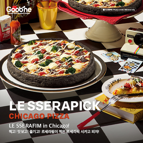 ▲ [굽네치킨 / Goobne] 르세라핌이 콕! 찍은 르세라픽 블랙 트러플 스테이크 시카고 피자! 오징어 먹물 블랙 딥디쉬 도우에 블랙페퍼 스테이크, 블랙 트러플 크림 소스와 세가지 치즈가 어우러져 풍미 가득 블랙 에디션!
