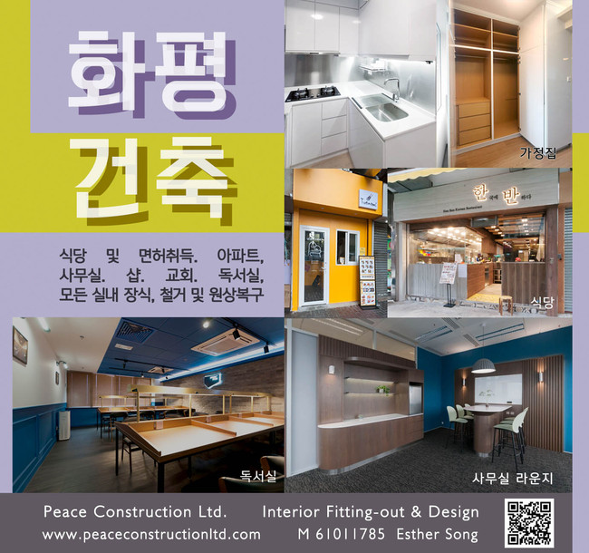 ▲ 화평건축 : 식당 및 면허취득, 아파트, 사무실, 샵, 교회, 독서실, 물류창고, 모든 실내장식 문의; : 6101-1785 Designer Esther