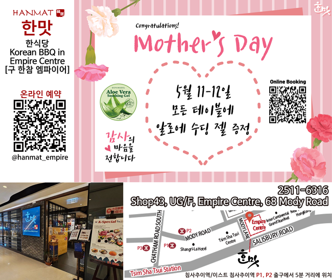 ▲ 한맛 엠파이어(구 한참 엠파이어) : 한참엠파이어가 '한맛'으로 변경 (HANMAT Korean Restaurant Empire Centre) 고기와 게장이 맛있는 문화나눔의 한식당, 동침사츄이 리갈구룡호텔 맞은편, 예약번호 2511 6316, 침사추이 P1, P2 출구