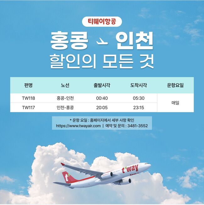 ■ 티웨이항공, 홍콩-인천 노선 매일 운항