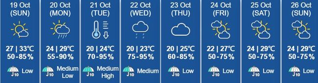 -10월 21일(화) : 펑선의 상황에 따라 더 높은 T8 경보 평가 예정
