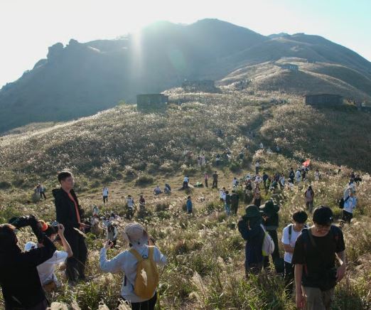 란타우 섬의 선셋 피크는 갈대 시즌을 맞아 많은 관광객들이 몰려들고 있다. 중국 본토 관광객들에게 하이킹과 사진 촬영 명소로 인기 있는 코스이다.