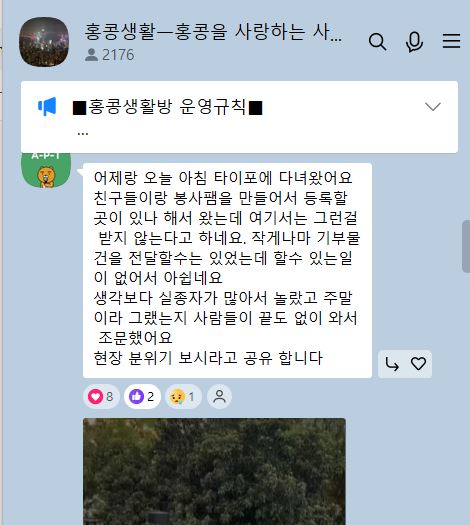 홍콩한인들이 모인 카톡 단체톡방 “홍콩생활방”에는 조문을 다녀오는 한 한인이 “어제와 오늘 아침 타이포에 다녀왔어요.