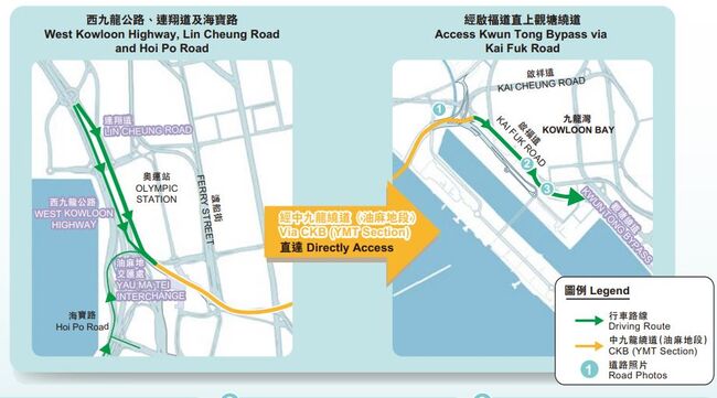 오는 12월 21일에 Central Kowloon Bypass (CKB) (Yau Ma Tei (YMT) 무료로 개통된다.