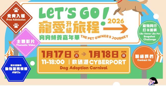농림수산보호국은 내일 토요일과 일요일에 주말 사이버포트 아케이드에서 "함께 떠나요! 반려동물 주인의 여정" 반려견 입양 축제 2026을 개최한다.
