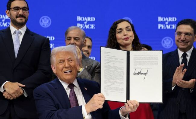 도널드 트럼프 미국 대통령과 여러 국가 대표들이 스위스 다보스에서 미국이 제안한 '평화위원회'의 공식 출범을 선언하는 문서에 서명했다.