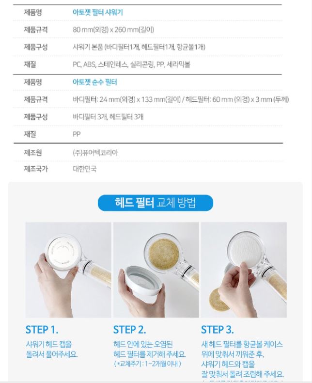 아토젯 샤워기 본품 + 헤드필터 3p + 바디필터 3p 세트