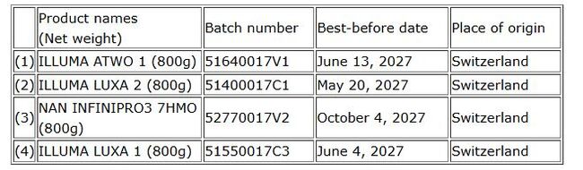 네슬레 홍콩에 따르면 1월 19일 현재 약 96,000캔의 해당 제품이 리콜되었다. 식품안전보건부와 네슬레 홍콩은 공동으로 후속 조치를 취했으며, 오늘 현재 창고에 보관된 제품과 이미 회수된 제품을 포함하여 문제가 있는 것으로 의심되는 유아용 조제분유 제품 16만 9천 캔에 대해 표시 및 봉인 조치를 완료했다.
