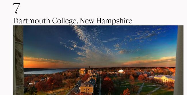 아름다운 캠퍼스로 유명한 다른 대학으로는 옥스퍼드 대학교(19위)와 스탠퍼드 대학교(29위)가 있습니다. 캐나다의 로열 로즈 대학교와 브리티시 컬럼비아 대학교도 각각 9위와 22위에 이름을 올렸다.