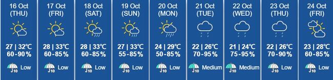 다음 주 초 열대성 저기압이 홍콩에 접근하면서 다음주 22일 수요일에는 기온이 21°C까지 떨어질 것으로 예상된다.