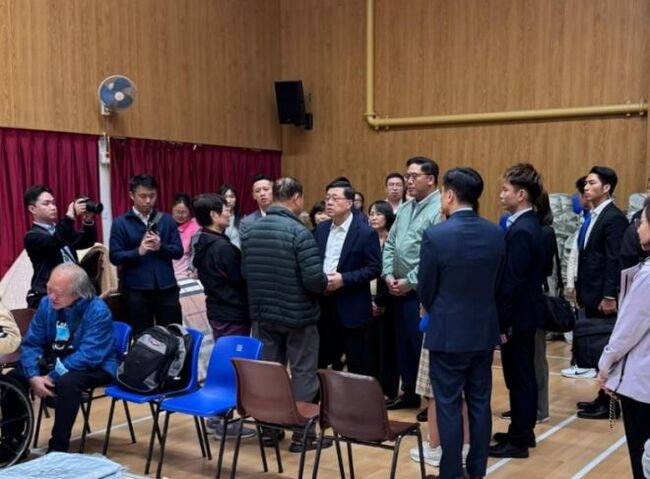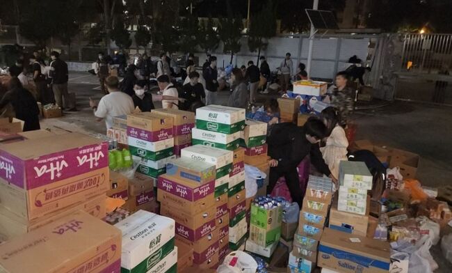 타이포 왕푹 코트에서 발생한 5급 화재가 오늘까지 이어지면서 지역 주민들이 임시 대피소에 구호물품을 전달하고 있다. 하지만 기부처가 포화 상태에 이르러 물품 수령이 일시적으로 중단되었다.