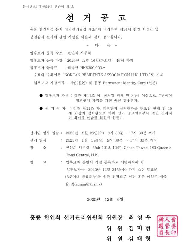 ▲ 홍콩한타임즈 광고후원 문의 : Email: hkkrtimes@gmail.com / 카톡ID: 242500ryune