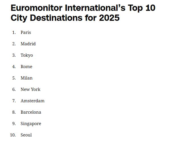 유로모니터 인터내셔널은 2025년의 몇 가지 트렌드를 주목했다. 과잉 관광 문제를 해결하기 위해 도시들은 관광 규모보다는 가치에 초점을 맞춘 관광 전략을 재정비하고 있다. 즉, 더 오래 체류하고, 더 많은 돈을 쓰며, 지역 환경과 문화에 더 책임감 있게 참여하는 방문객을 타겟팅하는 것을 의미한다.