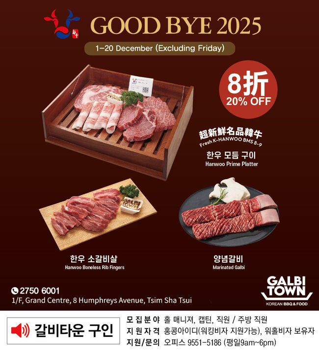 갈비타운 구인 : 홀 매니져, 캡틴, 직원 / 주방 직원/지원자격 : 홍콩아이디(워킹비자 지원가능), 워홀비자 보유자/지원/문의 : 오피스 9551-5186 (평일9am~6pm)