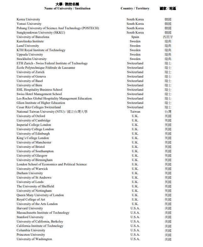 ▲ 적격대학교 리스트 : www.hkengage.gov.hk