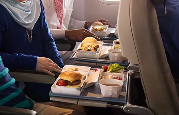 사우디아 항공은 이코노미석 승객에게 정통 중동의 풍미를 살리는 메뉴를 제공하고 있다.