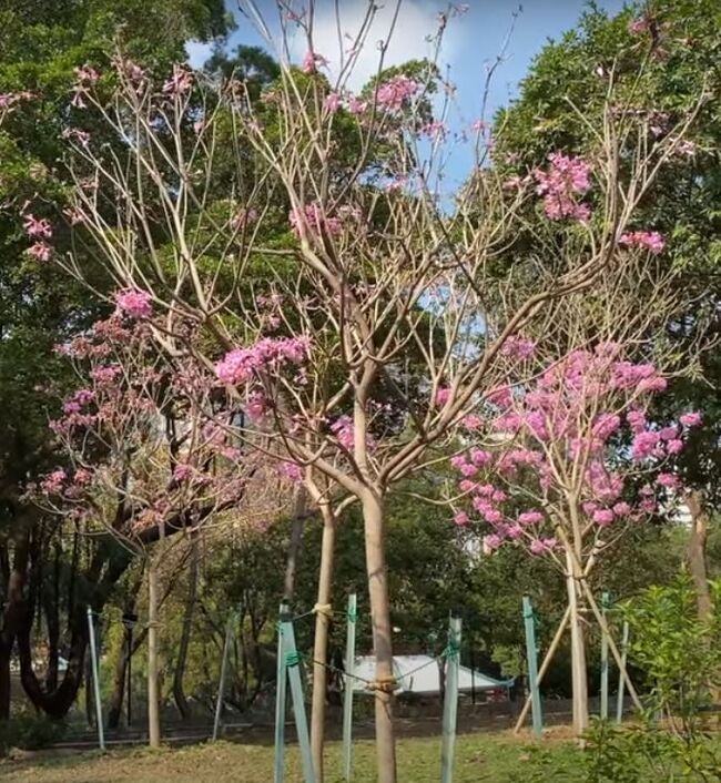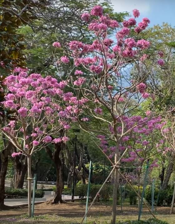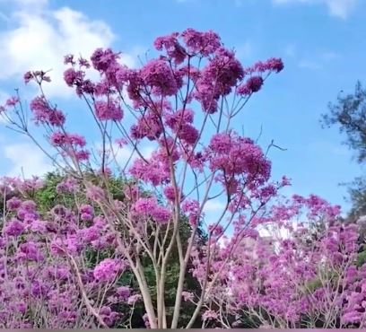 자주색 나팔꽃나무는 능소화과에 속하는 낙엽수로, 높이가 최대 30미터까지 자란다. 만개 시에는 잎은 적고 꽃이 무성하게 피어 나무 전체가 자주색을 띤 붉은색으로 물들어 잊을 수 없는 장관을 연출한다. 자세히 보기 https://www.fa.gov.hk/en/tabebuia-pentaphylla.html#pop-video