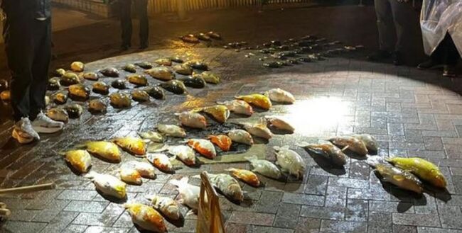 지난 일요일 25일, 정관오 킹람 단지에서 진행된 연못 청소 작업중 물고기 100마리 이상이 폐사해 경찰이 수사 중이다.