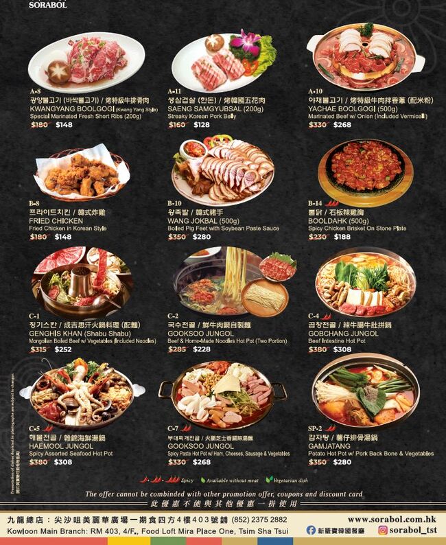 *최상급의 고기를 가성비 최고로 제공합니다. 한돈, 제주흑돼지 - 삼겹살, 목살 - 감자탕, 부대찌개 - 장어구이 주소 : Shop 74-76 G/F9 Fung Yau St.South Yuenlong Tel.:6162 0798 (윈롱MTR 출구F)