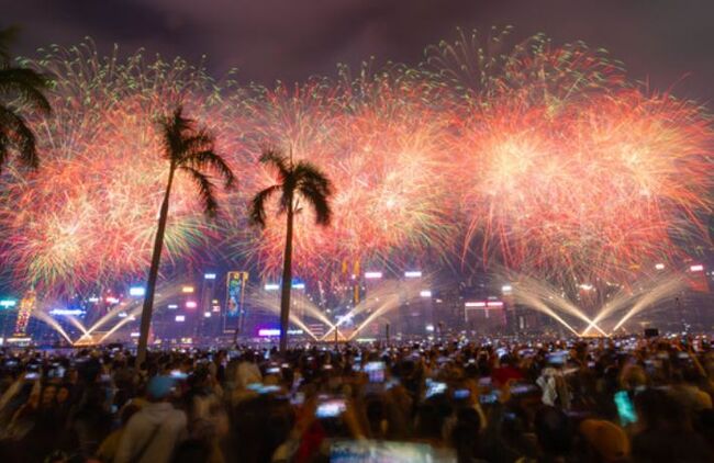 18일 오후 8시, 문화체육관광국이 주관하는 불꽃놀이에 수만 명의 주민과 관광객들이 빅토리아 항구 양쪽에 모여 말의 해 새해를 기념하는 불꽃놀이를 관람했다.