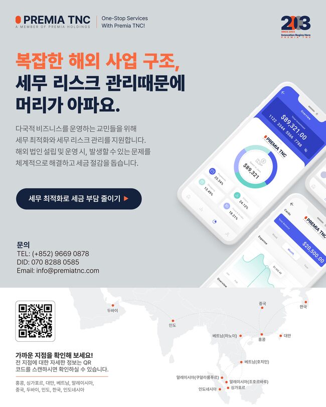 ■ 프레미아티엔씨(구코차이나티엔씨) : 법인설립/관리, 회계결산, 세무자문및회계감사+852 9669 0878 info@premiatnc.com / 웹사이트 https://premiatnc.com/kr//