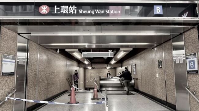 현장에 도착한 경찰은 역 안에서 용의자 2명을 검거했다. 검은색 두건을 쓴 용의자들은 여러 명의 경찰관의 감시하에 B번 출구 계단 양쪽에 앉아 있었다. 은색 7인승 차량 한 대가 데스 보우 로드 센트럴(Des Voeux Road Central)에서 정차 후 압수되었다.