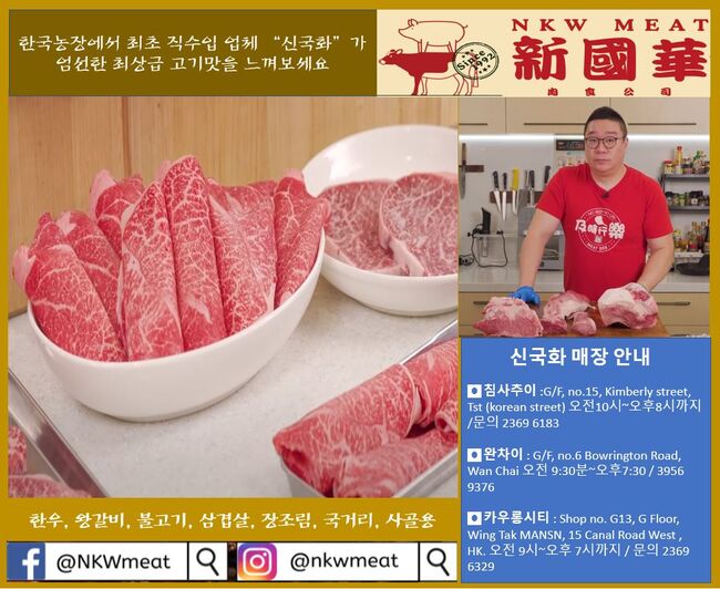 ▶신국화(NEW KWOK WHA MEAT) 한국농장 직수입업체, 한우, 한돈, 삽겹살, 왕갈비, 국거리 주문 hkd800이상 무료배송 Tel. 6092 3989 왓셉 https://wa.me/85260923989