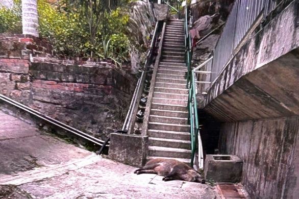 틴차우 로드(Tin Chau Road)의 공중화장실 근처를 지나던 여성이 약 1미터 길이의 멧돼지가 갑자기 다리를 물었다. 여성은 비명을 질렀고 인근 사람들이 달려와 나무 막대기로 쫒아냈다.