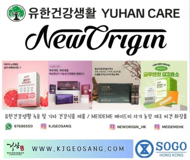 ■ Geosang 巨商 거상 (HK) Ltd. WWW.KJGEOSANG.COM 98년 역사를 자랑하는 대한민국 제약회사 1위 기업인 유한양행 산하 유한건강생활, 국내 청정 지역 변산반도 자사 농장에서 직접 키운 비건화장품 메이드미 Meideme 문의전화 67686550