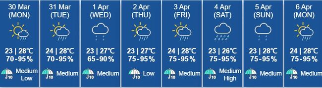 오늘과 내일, 저기압골이 광둥성 해안에 접근하면서 이 지역에 소나기와 뇌우가 예상된다. 저기압골이 약해지면서 이번 주 중반에는 중국 남부 해안 지역의 날씨가 맑아지겠다.