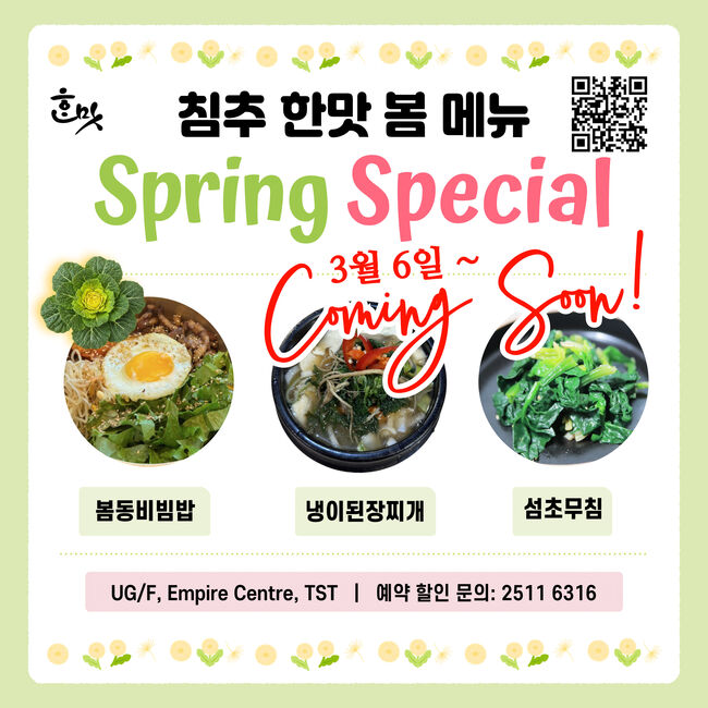 ■ 한맛(침사추이이스트) 봄 특선!!!봄 특선!!!! 봄동 비빔밥 정식 with 냉이된장찌개