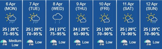 동풍 기류의 영향으로 이번 주 중반에는 광둥성 해안 지역에 한두 차례 소나기가 내릴 가능성이 있다.