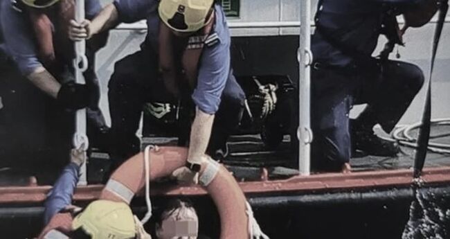 ■ 침사추이에서 바다에 뛰어든 남성 구조