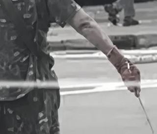방패와 헬멧을 착용한 경찰관 한 명과 방탄 조끼를 착용한 경찰관 한 명을 포함한 경찰관들이 조심스럽게 여성에게 접근했다. 그들은 여성에게 무기를 바닥에 내려놓으라고 지시하고 ‘위험무기 소지’혐의로 50세 여성을 체포했다.