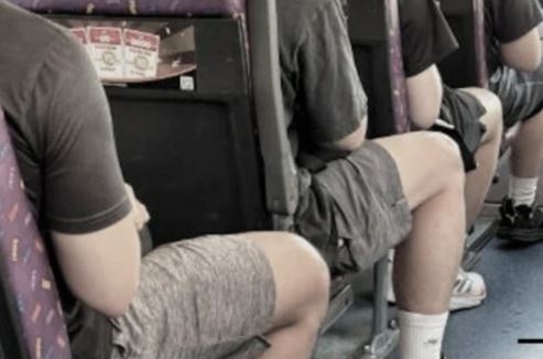 홍콩 이층 버스에 네 명의 젊은 남성이 똑같은 의상을 입고 일렬로 앉아 있는 사진이 온라인에 게시되었다.