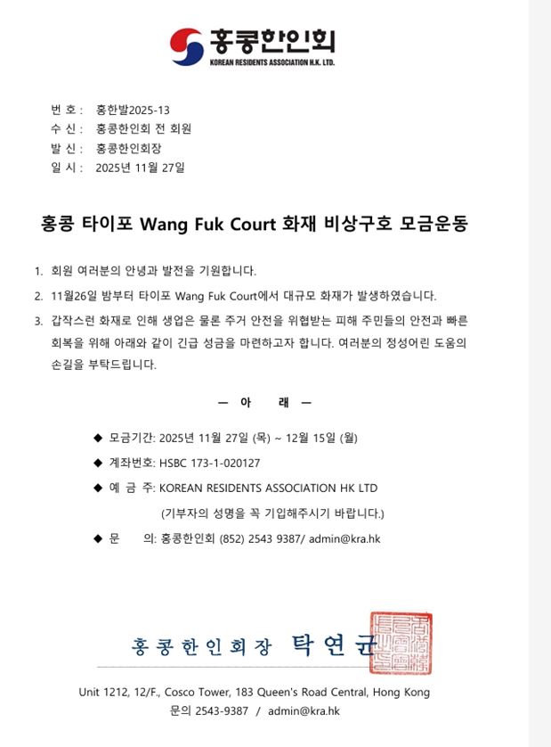 타이포 화재 사망한 외국인 헬퍼 유족, 보상금 지급