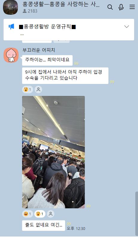 한편, 홍콩한인들 2,183명이 모인 “홍콩생활방”에서는 각 육로지점의 상황을 실시간으로 공유하고 있다. ‘홍콩생활방’ 실시간 공유에 따르면 오늘 오후 12시 30분 현재 중국선전을 방문하는 선전만, 헝유와이, 황강포트 그리고 주하이 국경지점은 홍콩을 빠져나가는 사람들로 매우 혼잡하다.