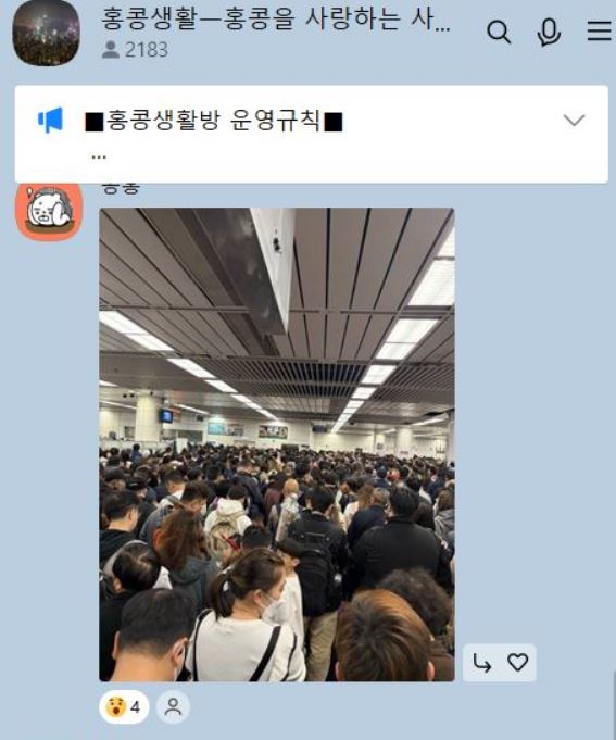 ▲ 홍콩한인들의 카톡 단체방(홍콩생활방)에 게시된 12월 25일 중국선전 출국 상황
