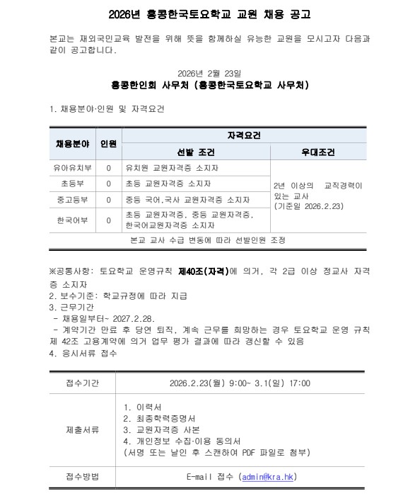 ■ 한국토요학교 교사채용