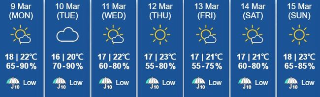 북동 계절풍의 영향으로 내일 광둥성은 다소 선선해진다. 건조한 계절풍은 이번 주 중반과 후반부터 다음 주 초까지 중국 남부 지역에 대체로 맑은 날씨를 가져다줄 것으로 예상된다.
