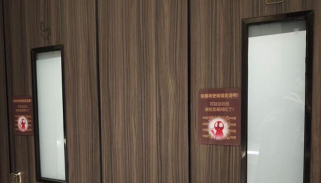 스마트 시스템 화장실에는 "흡연하면 유리가 투명해진다. 자제력을 잃고(흡연을 한다면) 온라인에서 화제의 인물이(망신당하는 일이 없게) 되는 일은 없도록 하세요."라는 안내문과 함께 만화풍의 "사회적 죽음"이라는 문구가 적혀 있다.